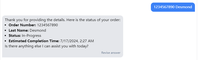 Add an API for retrieving order status during a chat